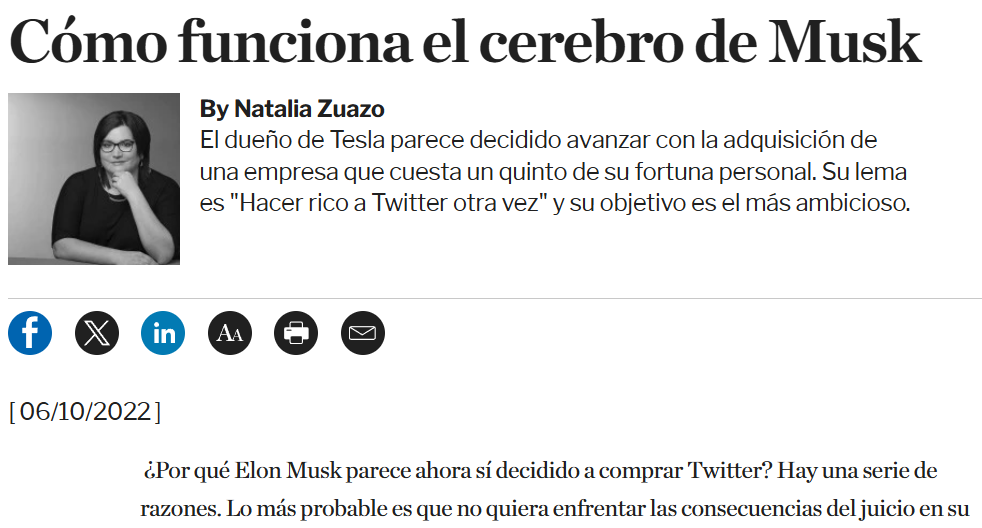 Musk es un actor central en el mundo de los negocios y en tecnología. Fundó Paypal y Tesla. La compra de Twitter es tan significativa como para impactar en las acciones de Wall Street y modificar el panorama de las tecnológicas. Con esta adquisición Musk impacta al mismo tiempo sobre la Costa Este de Wall Street y sobre la Costa Oeste de Silicon Valley.