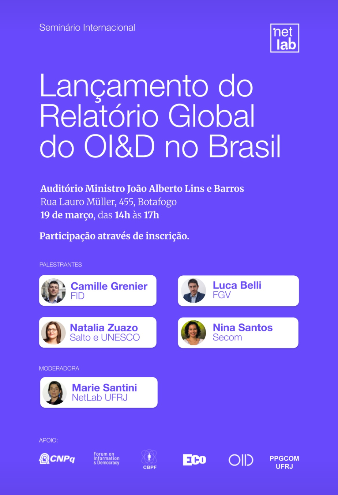 com Camille Grenier, Luca Belli e Nina Santos. Obrigado Rose Marie Santini por hospedar e promover esta conversa necessária. O evento foi coberto pela Globo (link ⬇️)